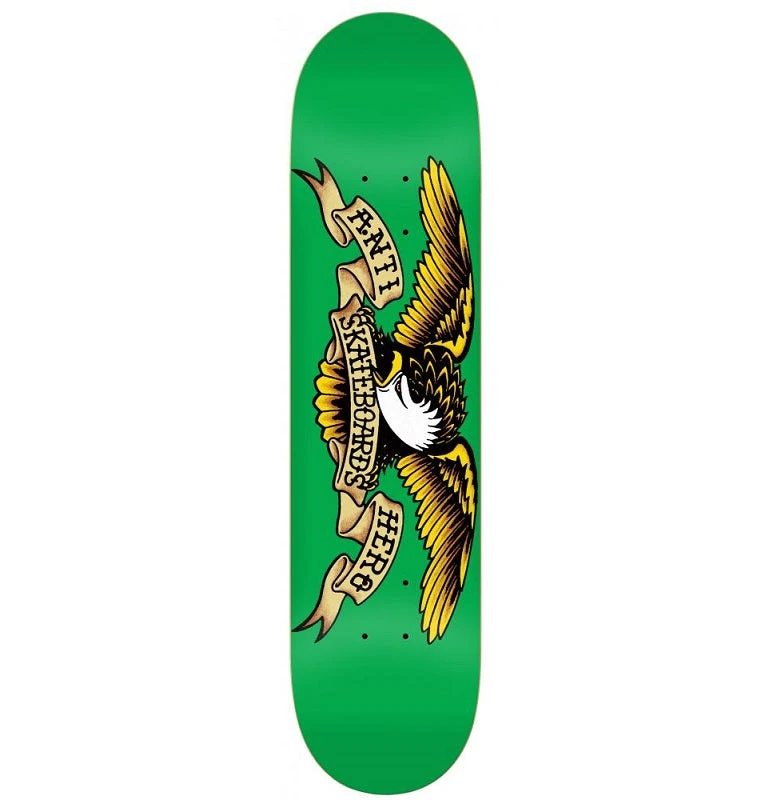 Anti Hero Classic Eagle Skateboard Deck measuring 7.81 inches wide by 31.75 long. Made from 7-ply Canadian maple with Anti Hero’s iconic classic eagle logo across the bottom.