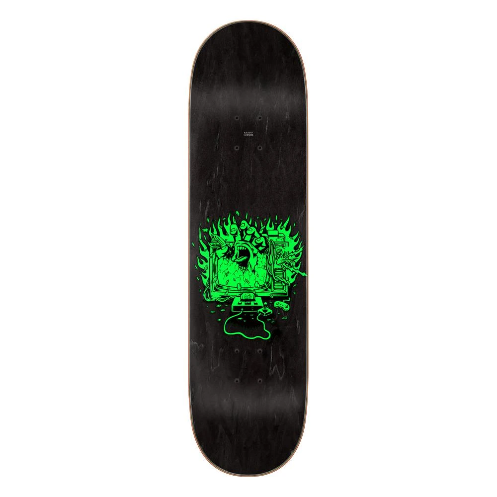 Santa Cruz Skateboards Kevin Braun Game Over Pro Everslick deck featuring art by Thomas Fernandez based on the orginal artwork by Jim Phillips. Everslicks are the fastest sliding slick boards out and 5 times stronger than a standard 7 ply deck. The unique graphic application process yields bright colors and high contrast graphics that look great longer.