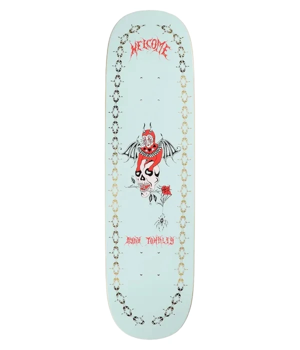 Here is the Welcome Angel Ryan Townley on Enera Teal and Gold Foil Skateboard Deck in 8.6″ !